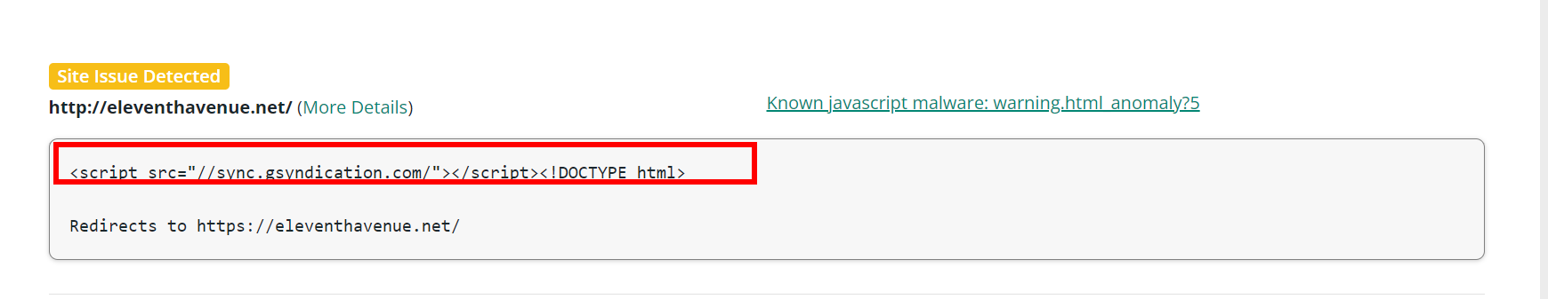 NameCheap then tried to whitelist my site. Still didn’t resolve the issue. I Googled the code and the domain to receive only just one result. The site said the link had been linked to malicious activities. After discovering this, I emailed NameCheap again with my suspicions.