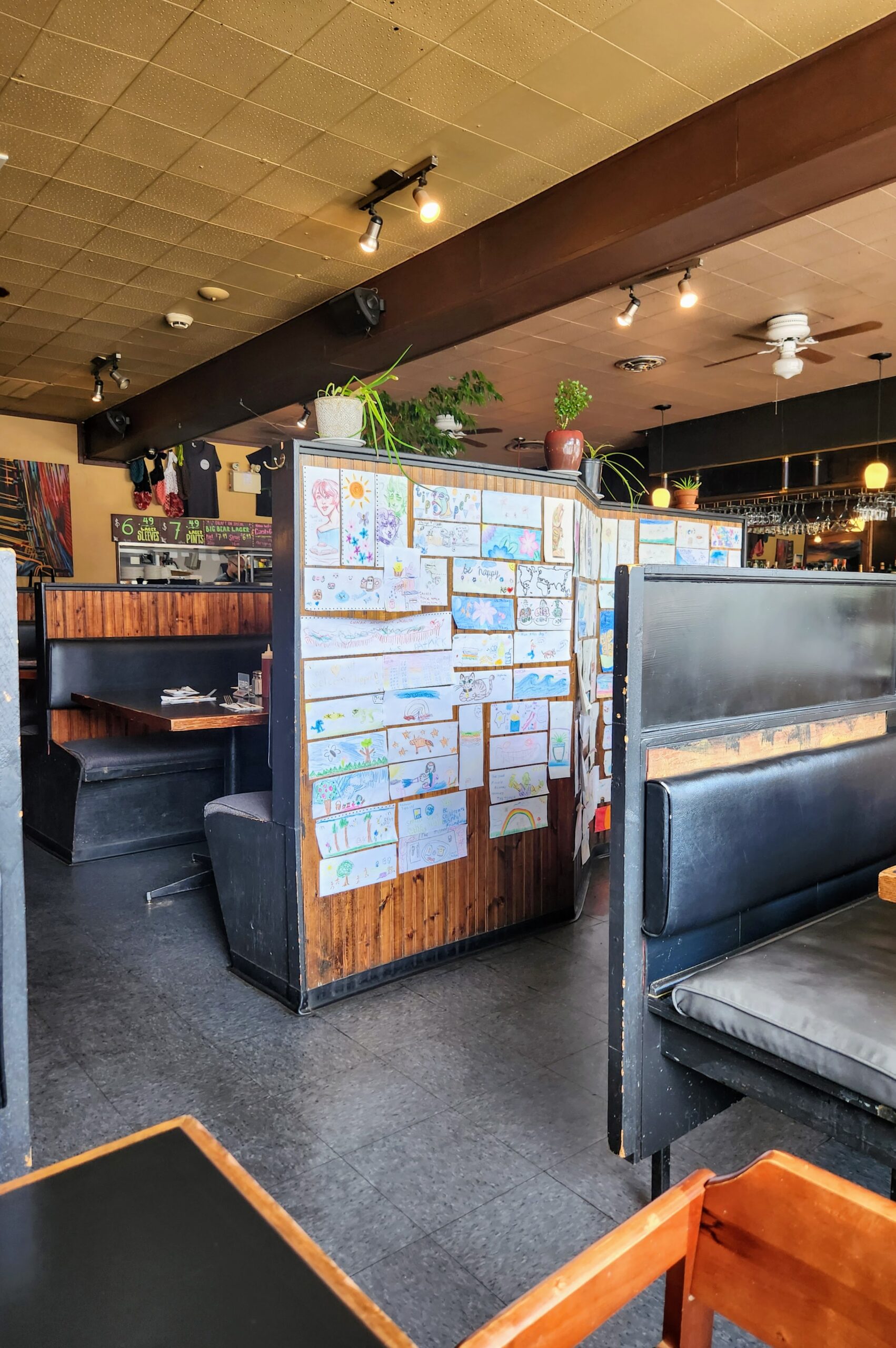 Upon entering the restaurant, we were instantly greeted and were surrounded by adorable artwork by children. Our server promptly gave us menus and, noticing Theo, asked if we wanted a high chair since we didn’t see any nearby.