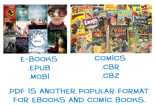 And did you know you can read comic books on an e-reader too?! When I first discovered that, I downloaded a few Black Widow comics. Listed above are the appropriate file formats for comics.